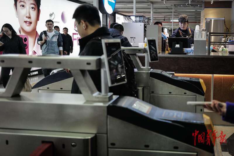 10月31日,北京地铁1号线国贸站,正在制作咖啡的店员。据介绍,这是北京地铁站内首家咖啡店,当天正式投入运营。乘客可以在进入地铁站前或乘车途中,通过手机小程序提前点单、到店领取。 中青报·中青网记者 赵迪/摄