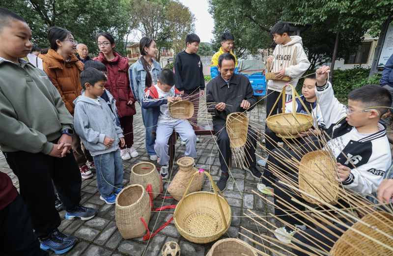 11月12日是浙江省湖州市长兴县实施秋假的第一天,当地中小学生迎来了为期三天的秋假假期,长兴县泗安镇社工站在罗家地村爱心驿站组织开展了“冬日暖心·爱心同行”活动。泗安镇社工站组织“爱心妈妈”、民间艺人、青年志愿者带领当地的中小学生参加绘画、旱船、竹编、手工等文娱活动,活动聚焦乡村青少年心理健康、亲子关系、社会适应与综合能力发展,构建“学校-家庭-村社”三位一体的爱心驿站,助力乡村青少年快乐成长。\n 新华社记者 徐昱 摄